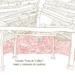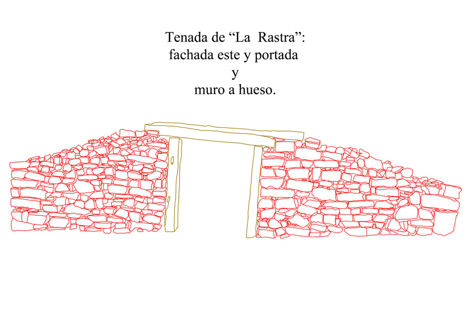 Fig. 254.- Dibujo sobre fotografía de la fachada este de la tenada de la “rastra” nº 3 (F. Palomero).