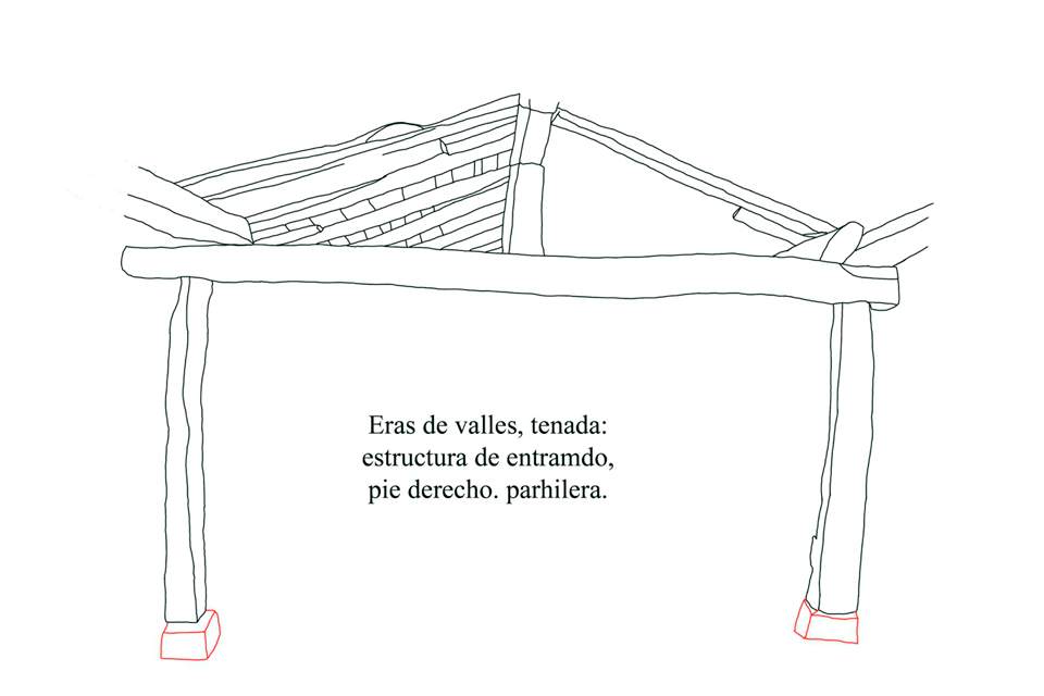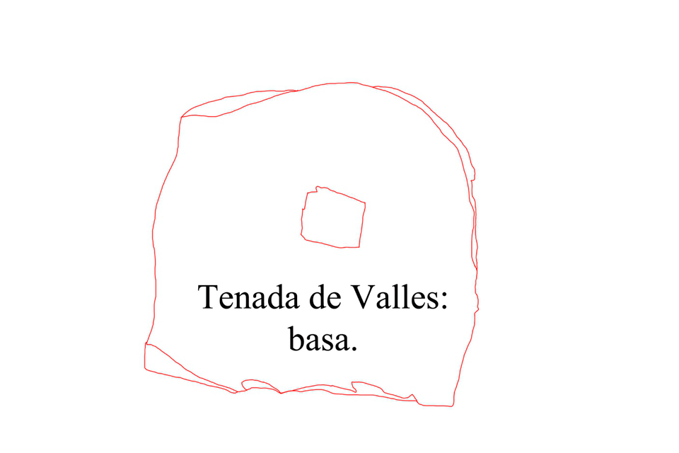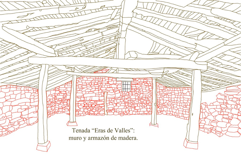 Fig. 246.- Dibujo sobre fotografía de muros y estructura de la tena nº 3 de las “eras de valles” (F. Palomero).