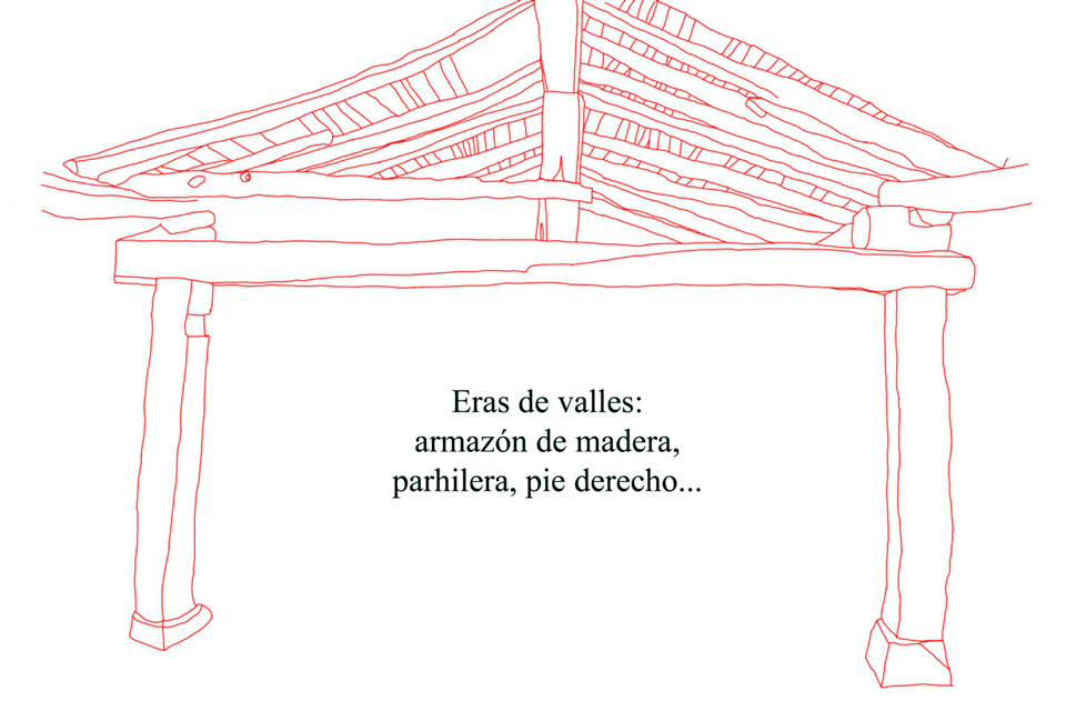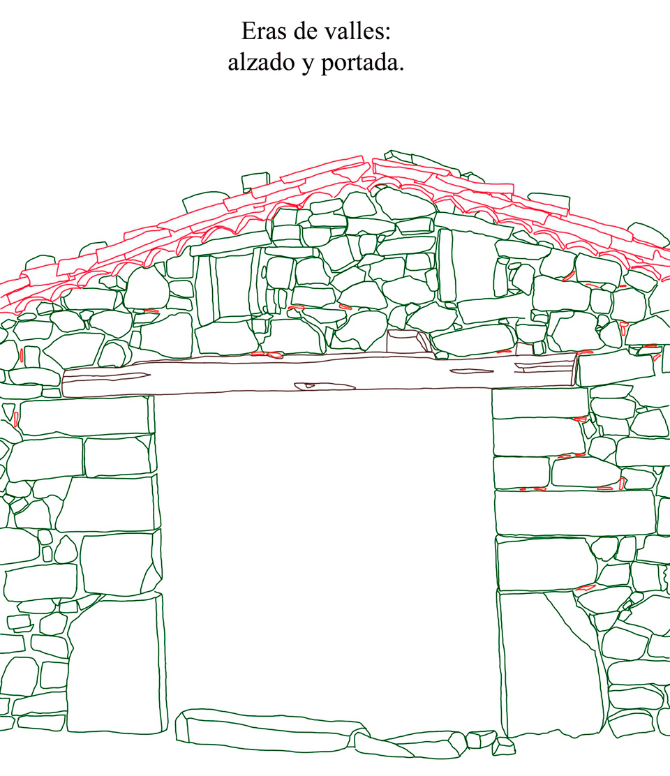 Fig. 251.- Dibujo sobre fotografía de la portada de la tenada nº 1 de las “eras de valles” (F. Palomero).