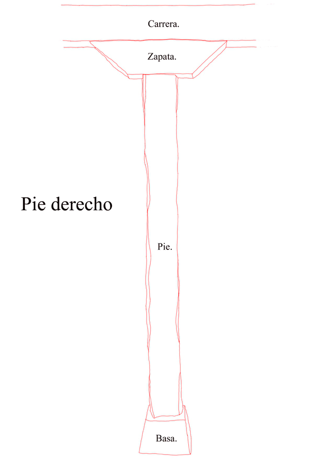 Fig. 248.- Dibujo sobre fotografía de pie derecho de la tenada nº 4 de las “eras de valles” (F. Palomero).
