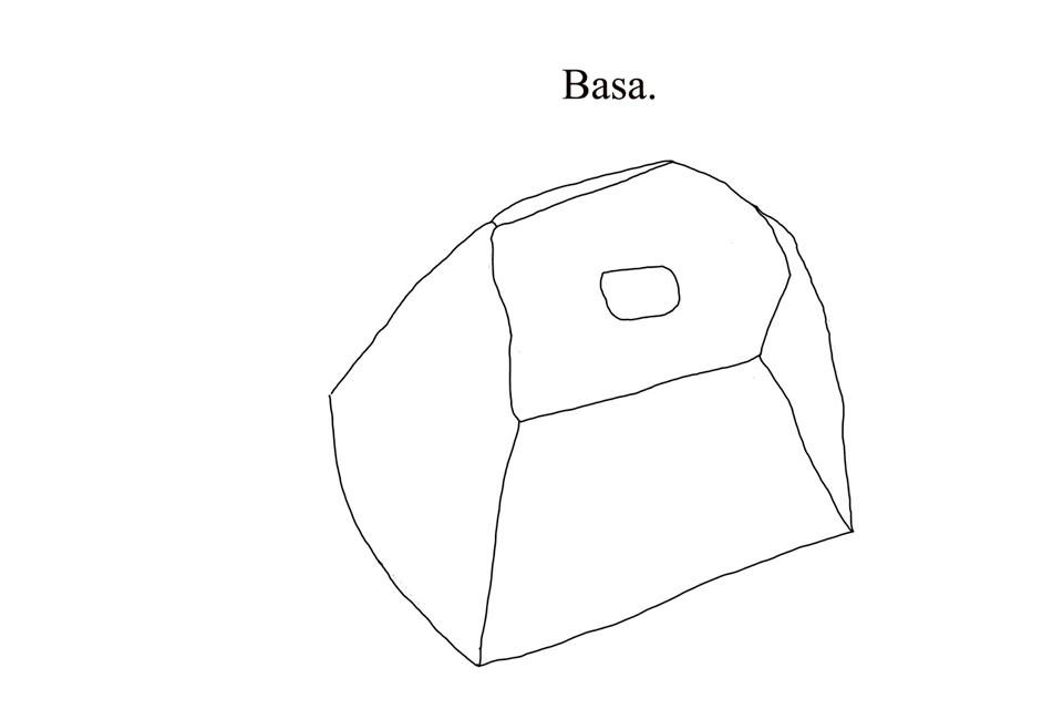 Fig. 249.- Dibujo sobre fotografía de una basa de la tenada nº 1de las “eras de valles” (F. Palomero).