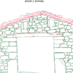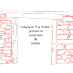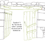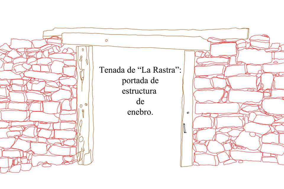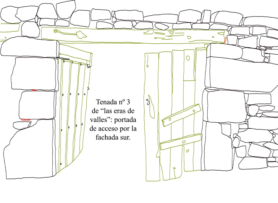 Fig. 252.- Dibujo sobre fotografía de la portada y puertas de la tenada nº 3 de las “eras de valles” (F. Palomero)