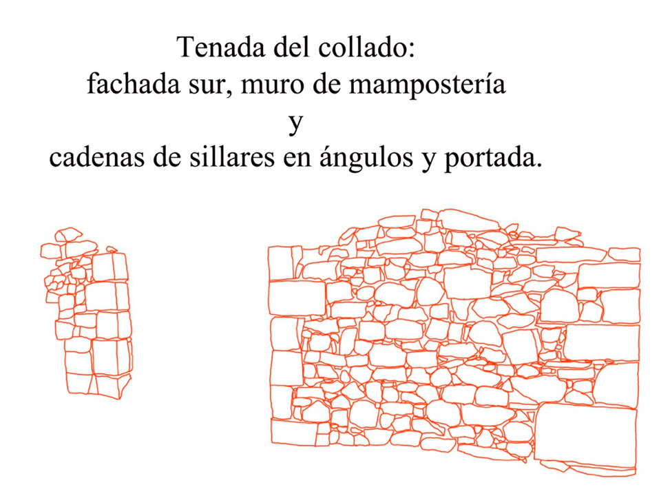 Fig. 256.- Dibujo sobre fotografía de muro y portada de la tenada del “collado” (F. Palomero).