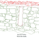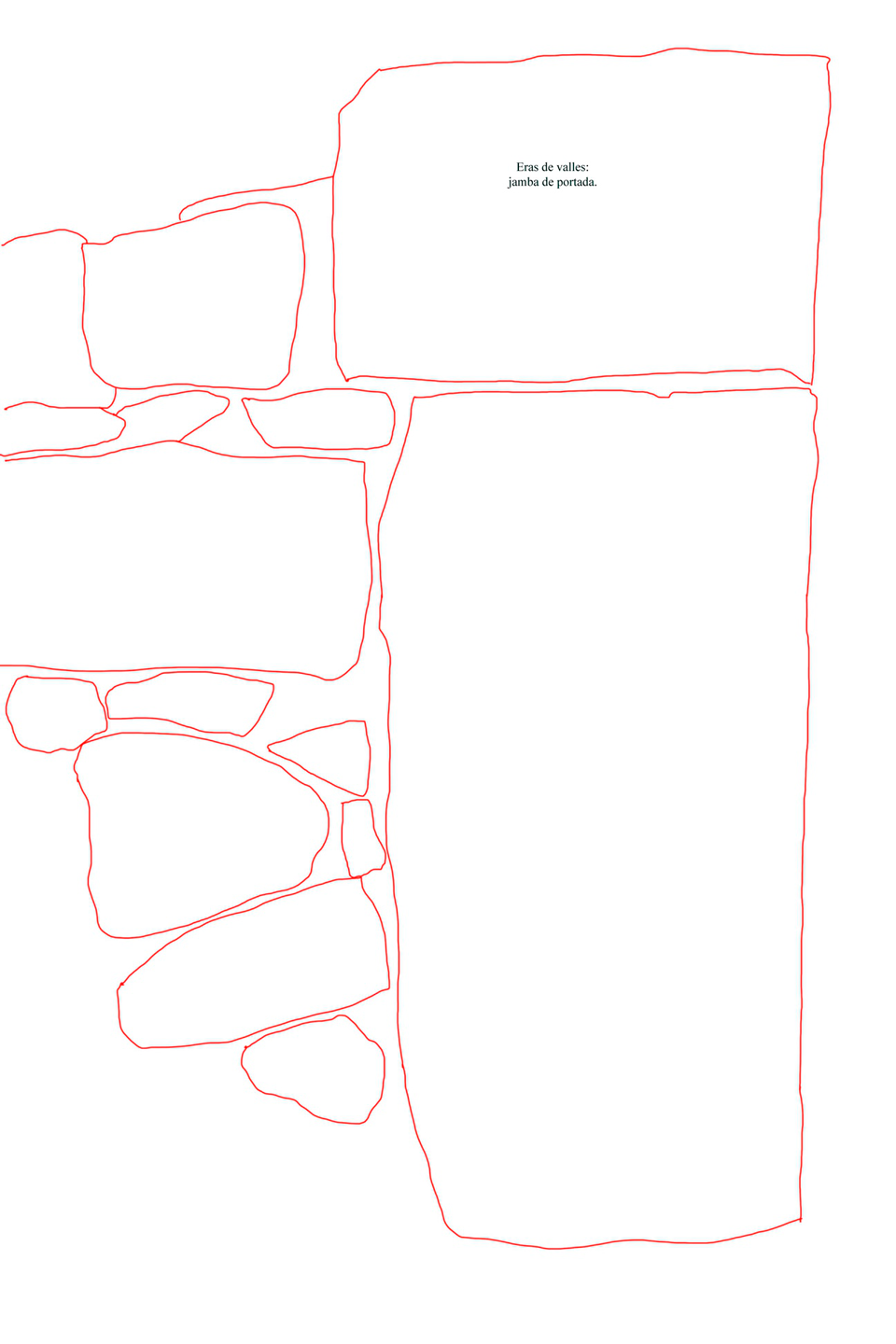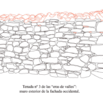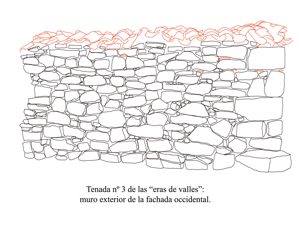 Fig. 257.- Dibujo sobre fotografía del muro exterior oeste de la tenada nº 3 de las “eras de valles” (F. Palomero).