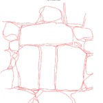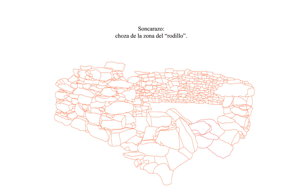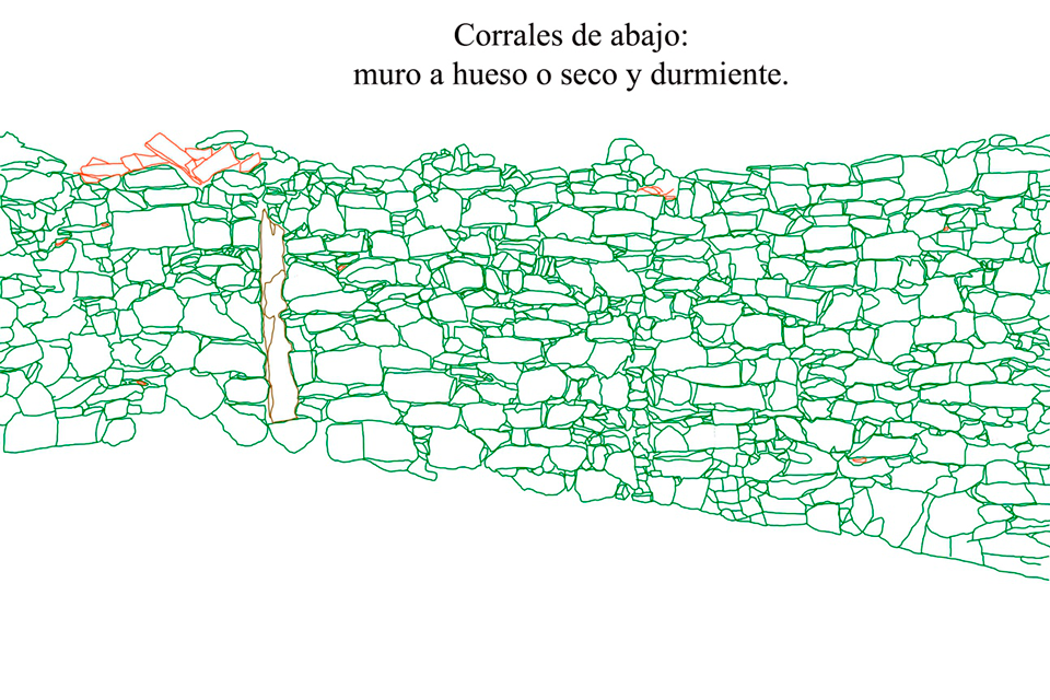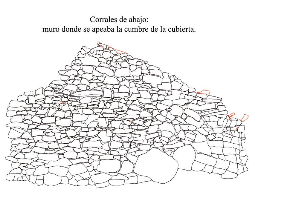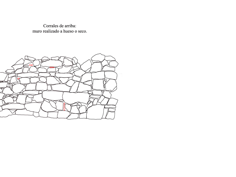 Fig. 264.- Dibujo sobre fotografía de uno de los muros a hueso de los “corrales de arriba” (F. Palomero).