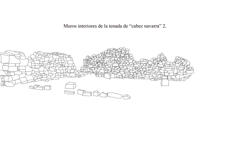 Fig. 261.- Dibujo sobre fotografía de los muros interiores de la tenada nº 2 de “cabeza navarra” (F. Palomero).