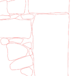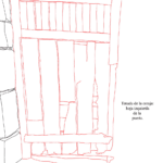 Fig. 263.- Dibujo sobre fotografía de la cadena de sillares angular de la tenada de la “cerca” (F. Palomero).
