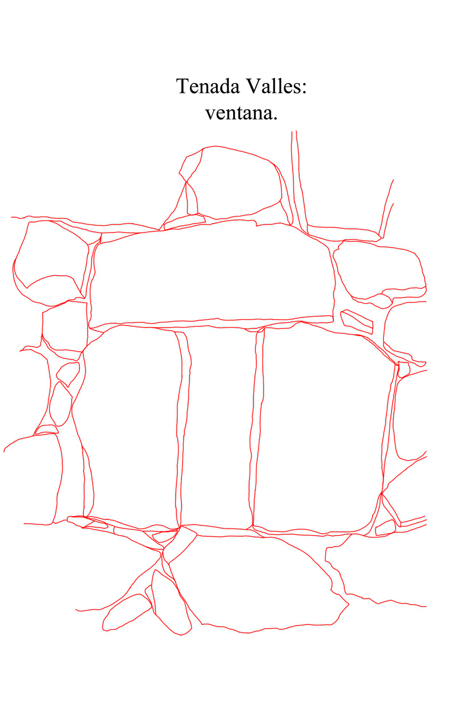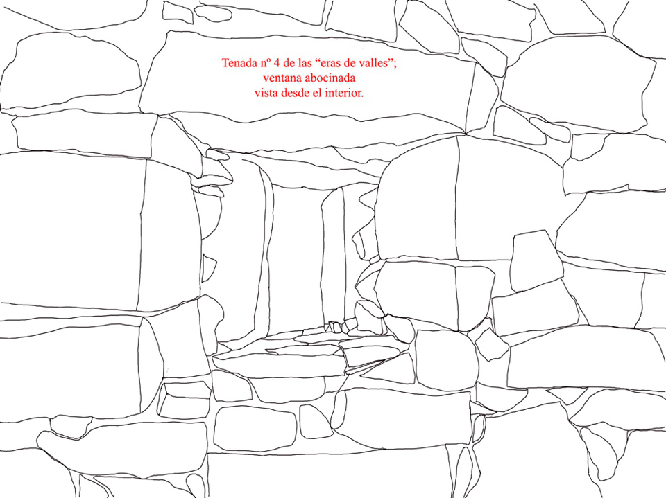 Fig. 270.- Dibujo sobre fotografía de un ventanuco interior de la tenada nº 4 de las “eras de valles” (F. Palomero).