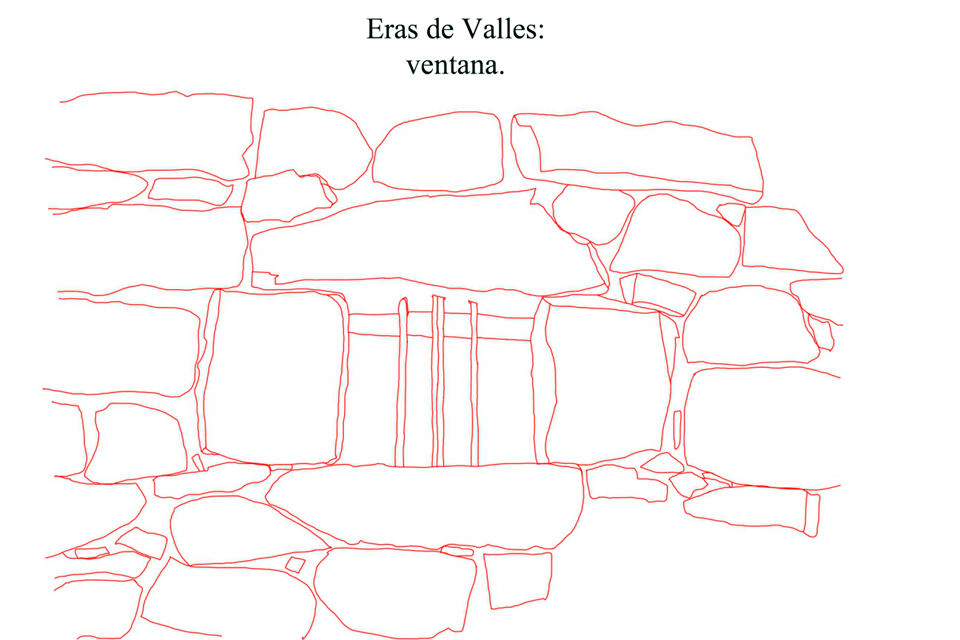 Fig. 268.- Dibujo sobre fotografía de un ventanuco de las tenadas de las “eras de valles” (F. Palomero).