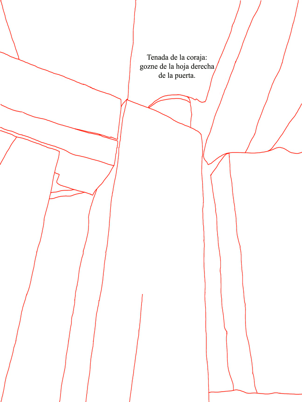 Fig. 275.- Dibujo sobre fotografía de la hoja derecha de la puerta de la tenada de la “coraja (F. Palomero).