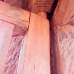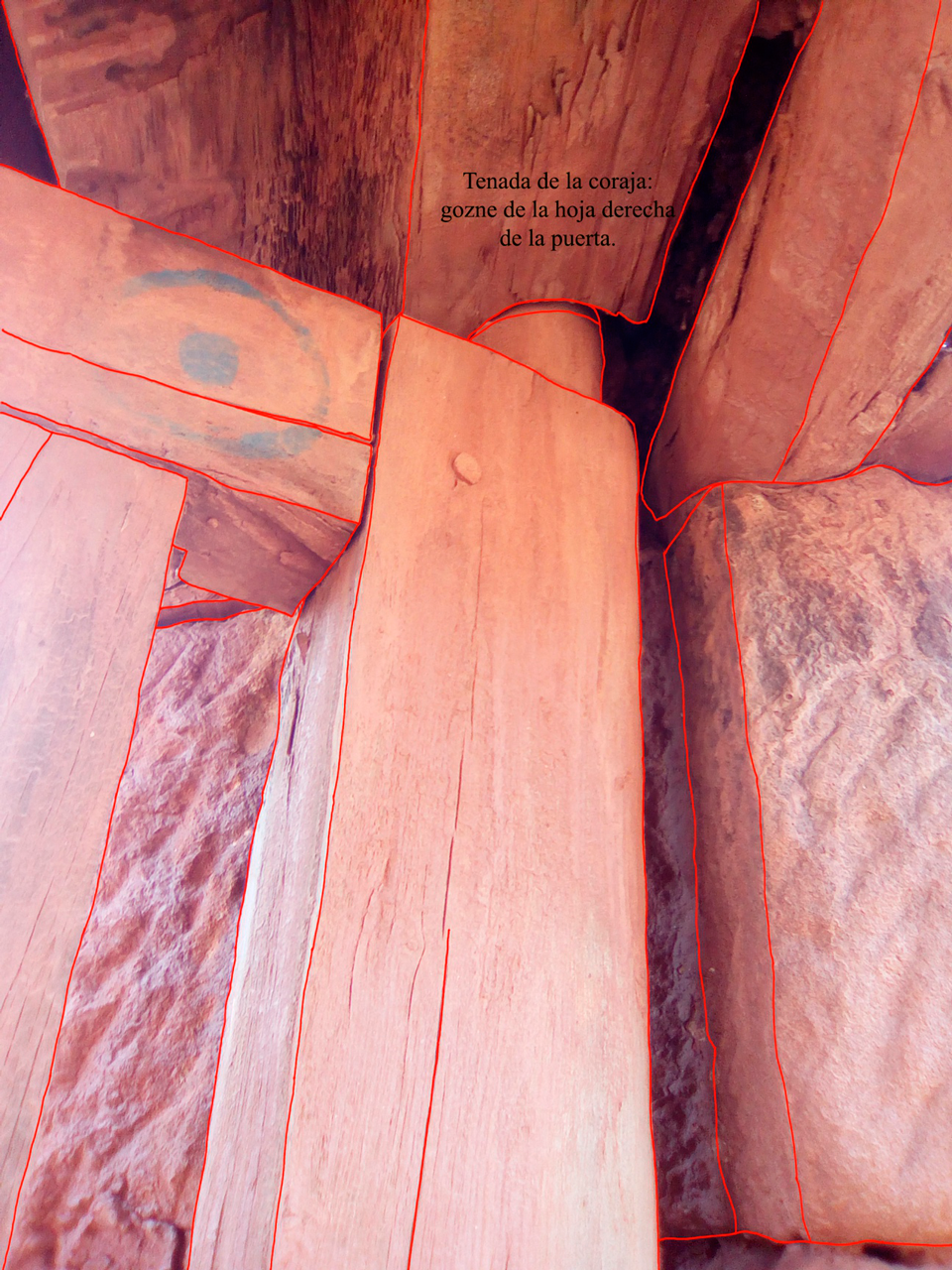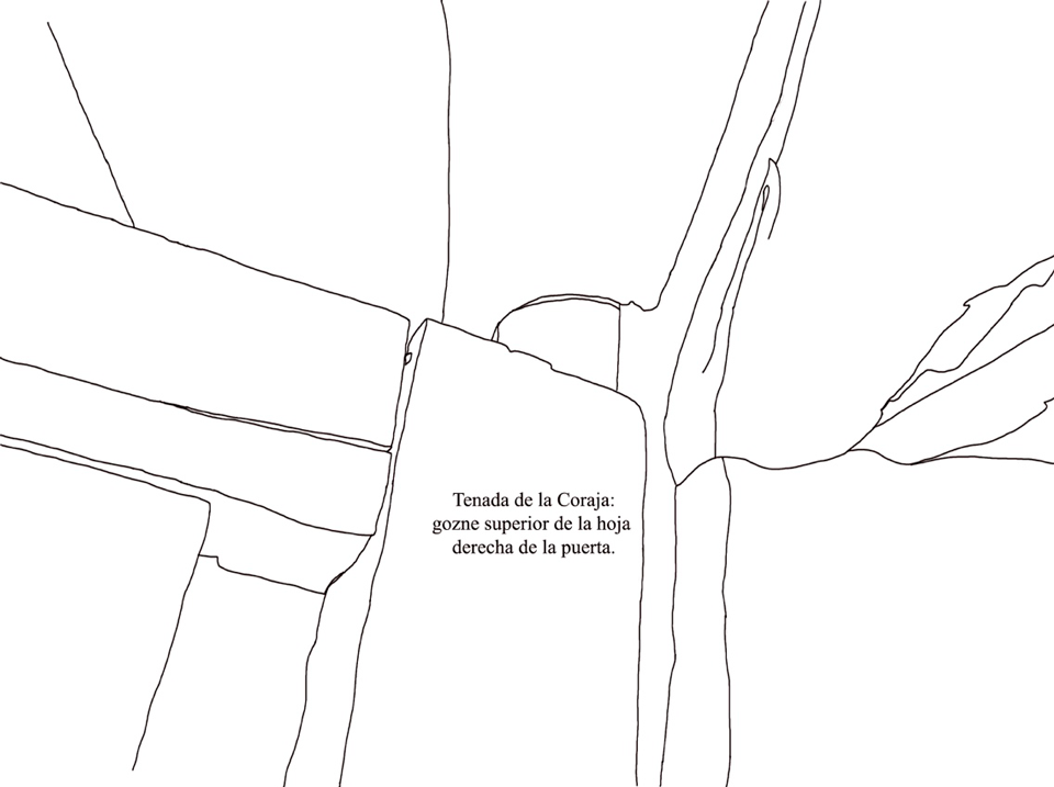 Fig. 272.- Dibujo sobre fotografía del gozne de la puerta de la tenada de la “coraja” (F. Palomero).