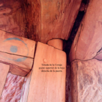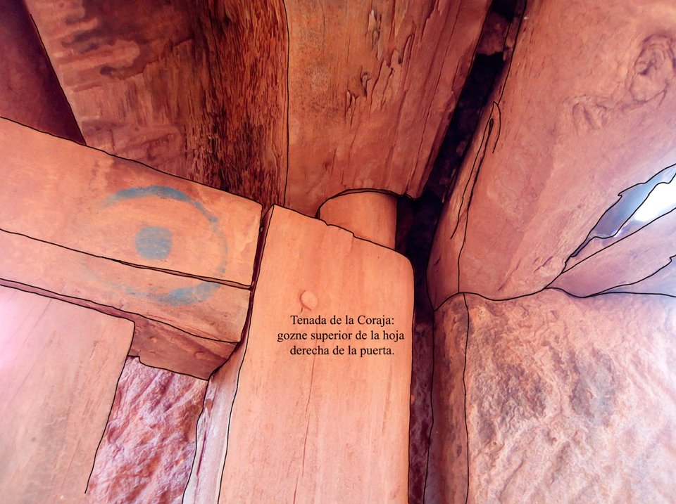 Fig. 273.- Dibujo sobre fotografía del gozne de la puerta de la tenada de la “coraja” (F. Palomero).