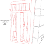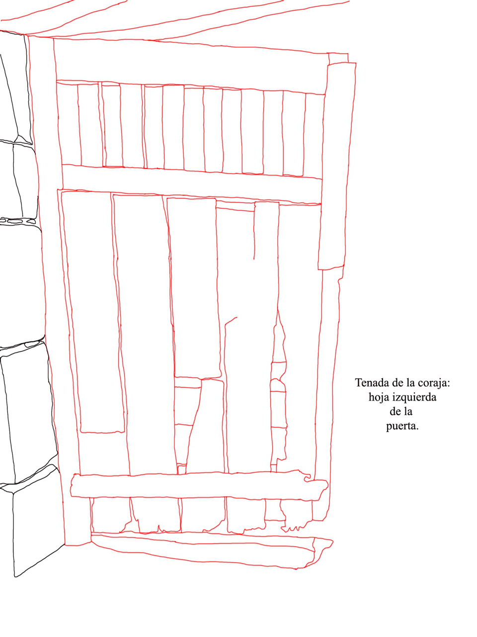 Fig. 276.- Dibujo sobre fotografía de la hoja izquierda de la puerta de la tenada de la “coraja (F. Palomero).