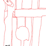 Fig. 274.- Dibujo sobre fotografía del gozne de la puerta de la tenada de la “coraja” (F. Palomero).