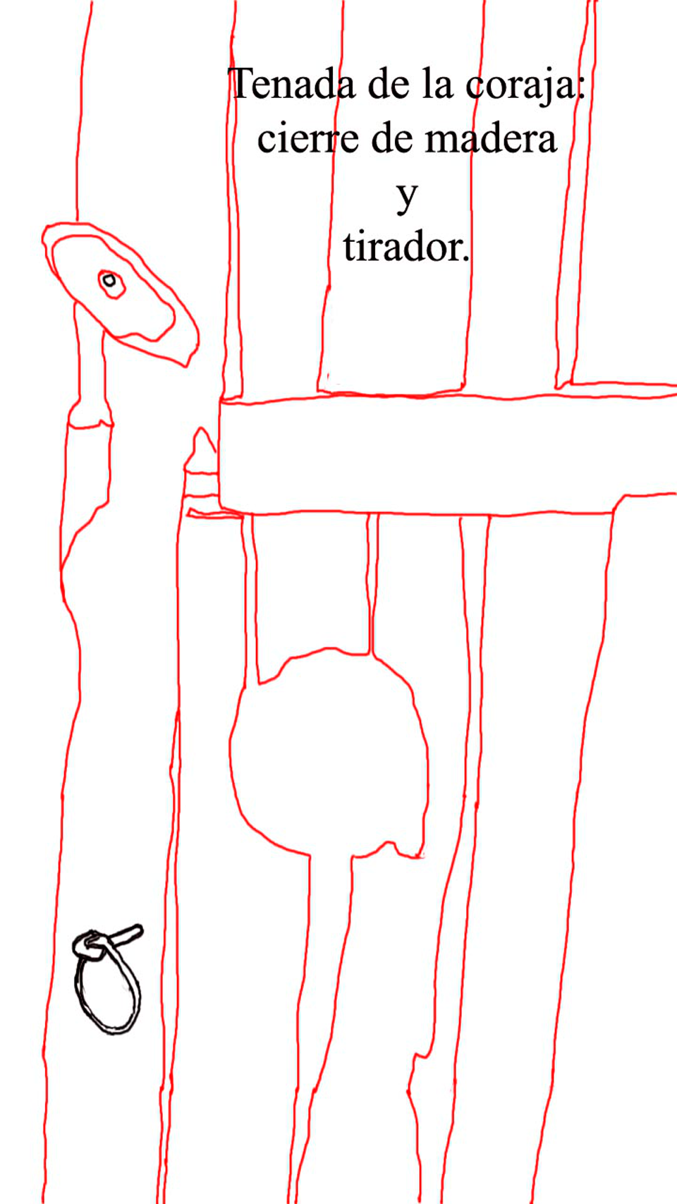 Fig. 277- Dibujo sobre fotografía de cierre (pasador) y tirador de la tenada de la “coraja (F. Palomero).