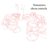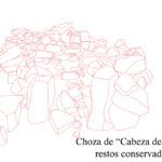 Fig. 279.- Dibujo sobre fotografía de los restos de la choza del “rodillo” (F. Palomero).
