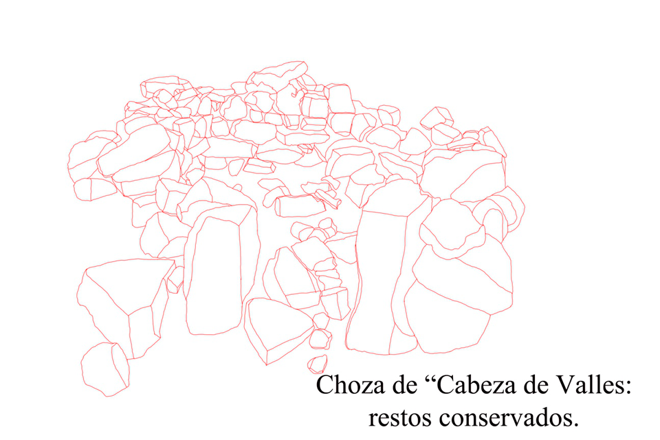 Fig. 278.- Dibujo sobre fotografía de los restos de la choza de los “valles” (F. Palomero).